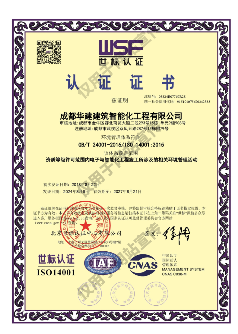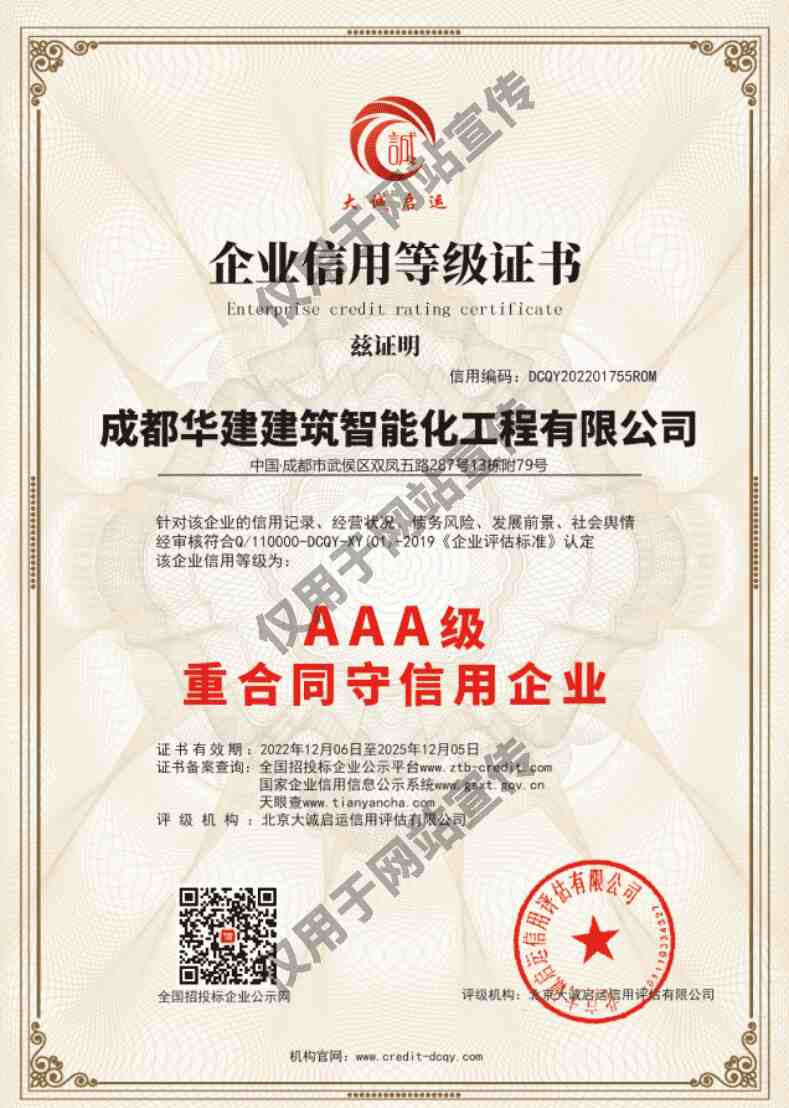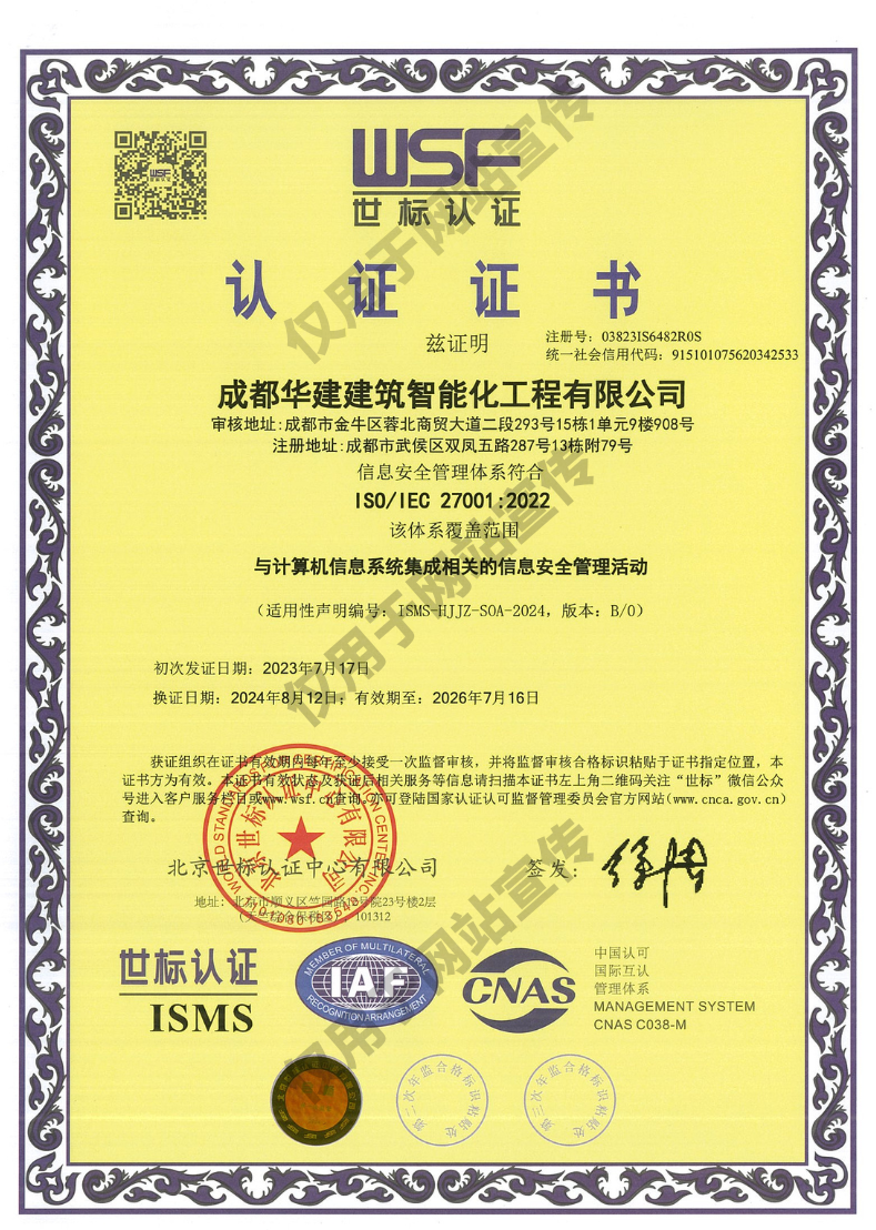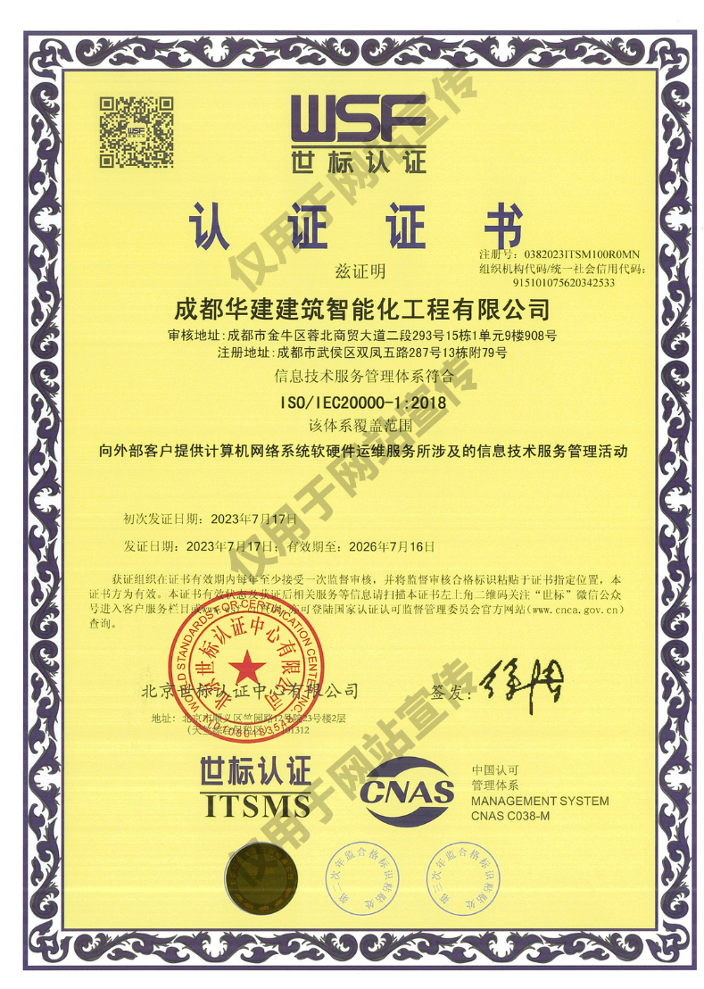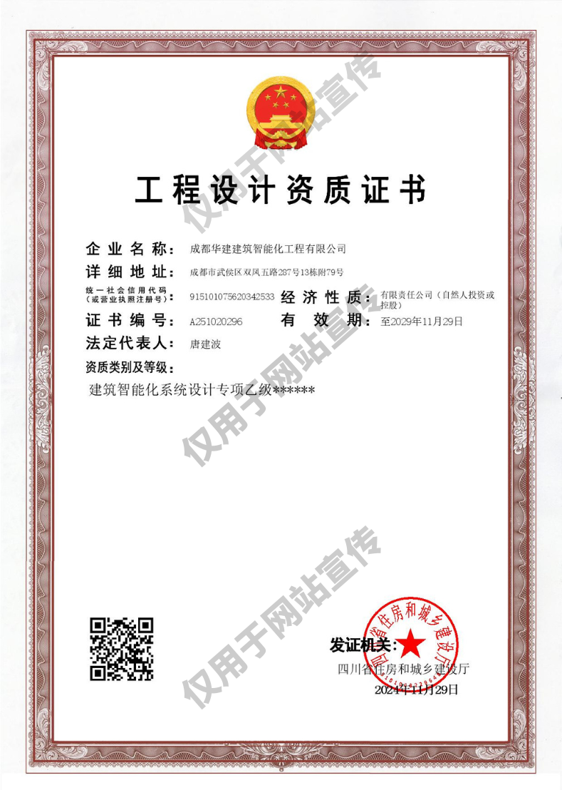 成都華建建筑智能化工程有限公司,19年專注弱電智能化工程、消防工程、建筑機(jī)電安裝工程的專業(yè)公司,具備電子與智能化工程、消防設(shè)施工程、建筑機(jī)電安裝、建筑裝修裝飾、建筑智能化設(shè)計(jì)等相關(guān)30余項(xiàng)資質(zhì)及證書。設(shè)計(jì)、施工和維保一站式服務(wù),多行業(yè)中大型成功交付案例?!?